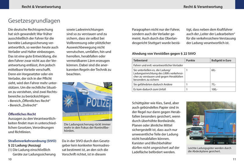 Im rechtlichen Teil sind alle gesetzlichen Grundlagen ausführlich beschrieben. Diese runden das komplexe Thema Ladungssicherung ab.