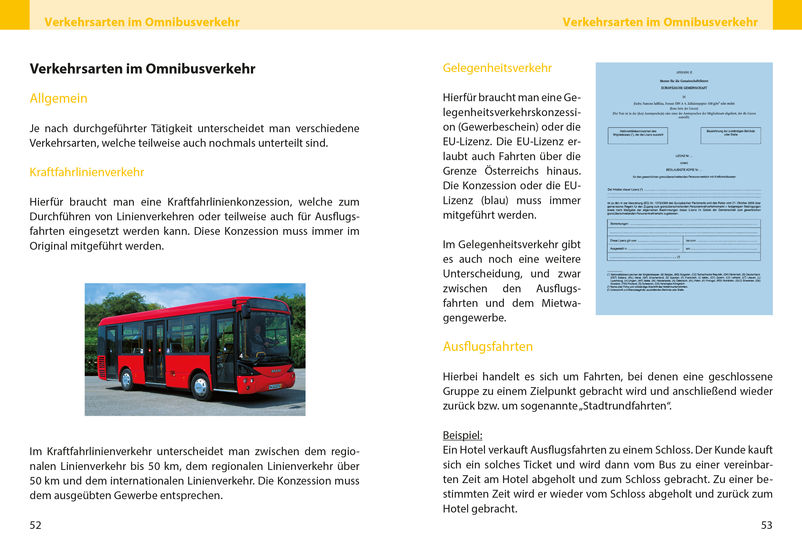 Ebenfalls werden die österreichischen Beförderungsbedingungen, die Bestandteil jedes Transportes sind und für alle Beteiligten gelten, behandelt. Des Weiteren wird auf den Schülertransport und die Beförderung spezieller Fahrgastgruppen eingegangen sowie die rechtliche Lage und Haftung erläutert.